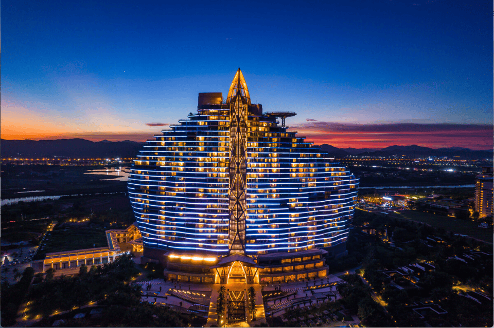 中国首家七星级酒店分析体亚特兰蒂斯,四时、威斯汀、艾迪逊、君悦、华尔道夫等全球出名酒店集团旗下的32家高端奢旅酒店均落座海棠湾。