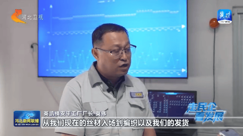 英凯模安平工场厂长 莫伟:从我们现正在的丝材入场到编织以及我们的发货,现正在全流程我们都是正在用数字化管控。我们车间的分析设备效率提拔了33%,制形成本下降了20%摆布,及格率我们曾经做到了99%以上。
