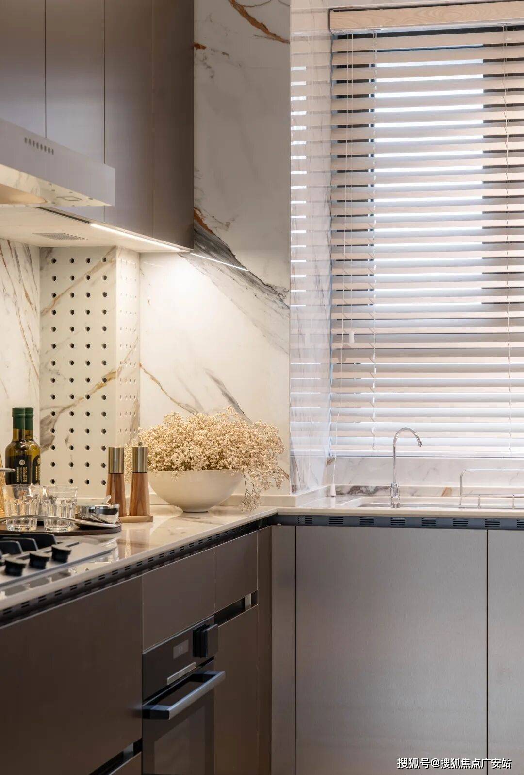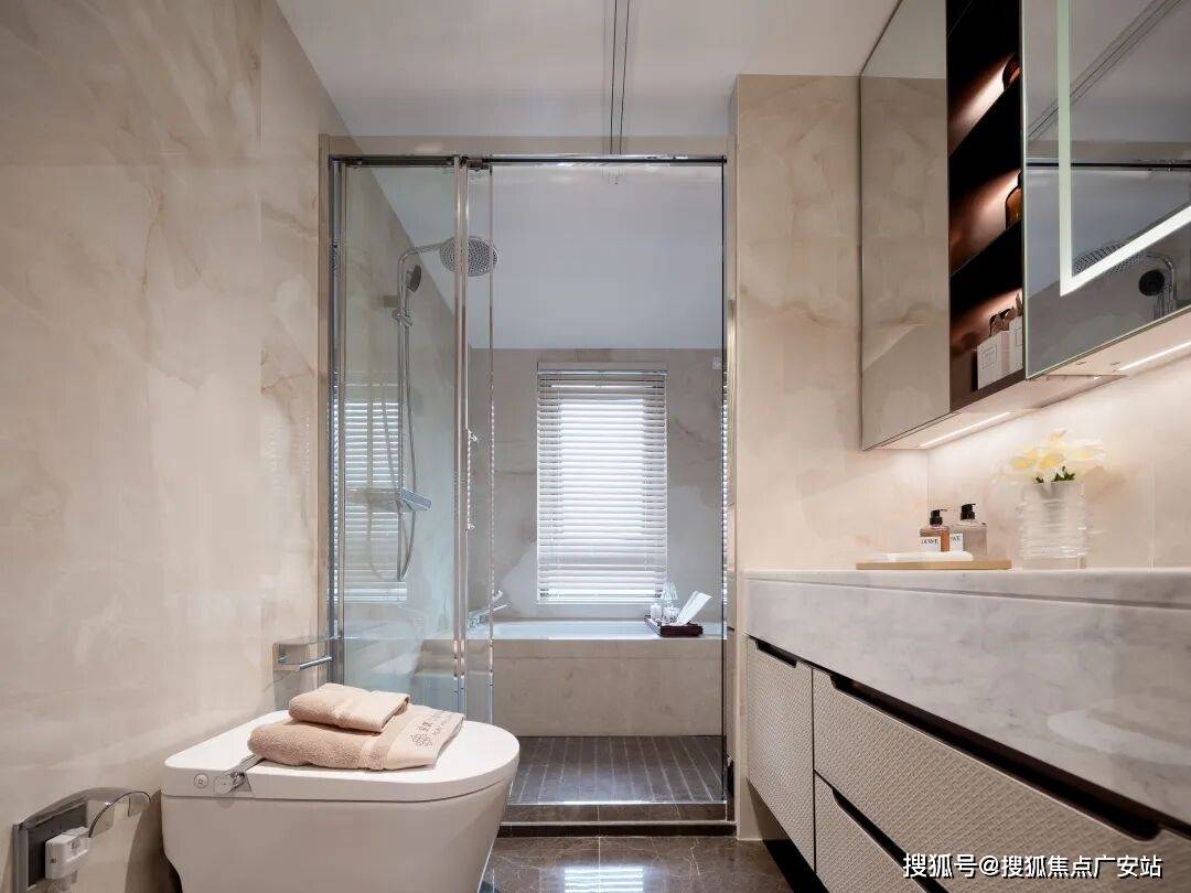 这里提一个细节,洗手间的水龙头嘴能够调理出水标的目的,以向上出水,便利家中女仆人洗头/漱口等日常需求,这种非抽拉式改变出水标的目的的水龙头设想,正在上海无论几多总价的项目中,我是头一次见!03。以及公区的打制,项目匠心打制全域石材精工空间,远超同级产物设置装备摆设尺度。此中有2点让我印象深刻: